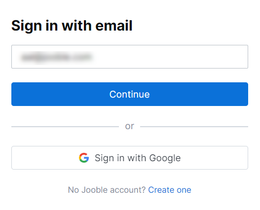 - Introduza a sua palavra-passe e clique no botão “ Entrar ” :Acedeu com sucesso à sua conta Jooble. Siga agora as instruções abaixo para os utilizadores autorizados.
